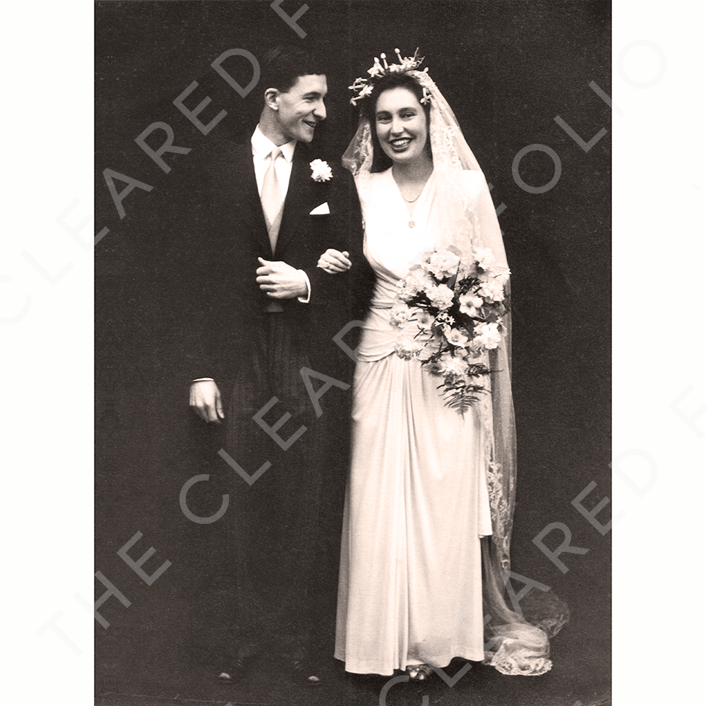 B/W Photograph, 1940s young wedding couple
