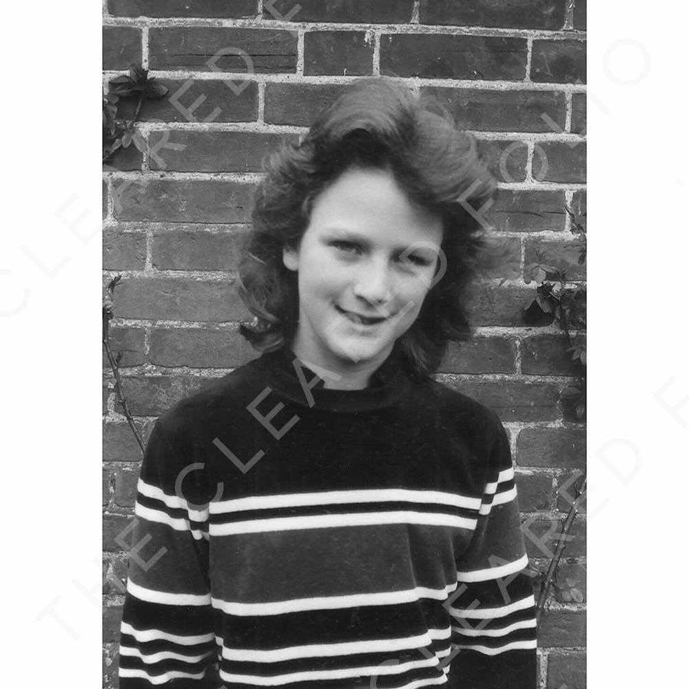 B/W Photograph, 1980s girl against a brick wall