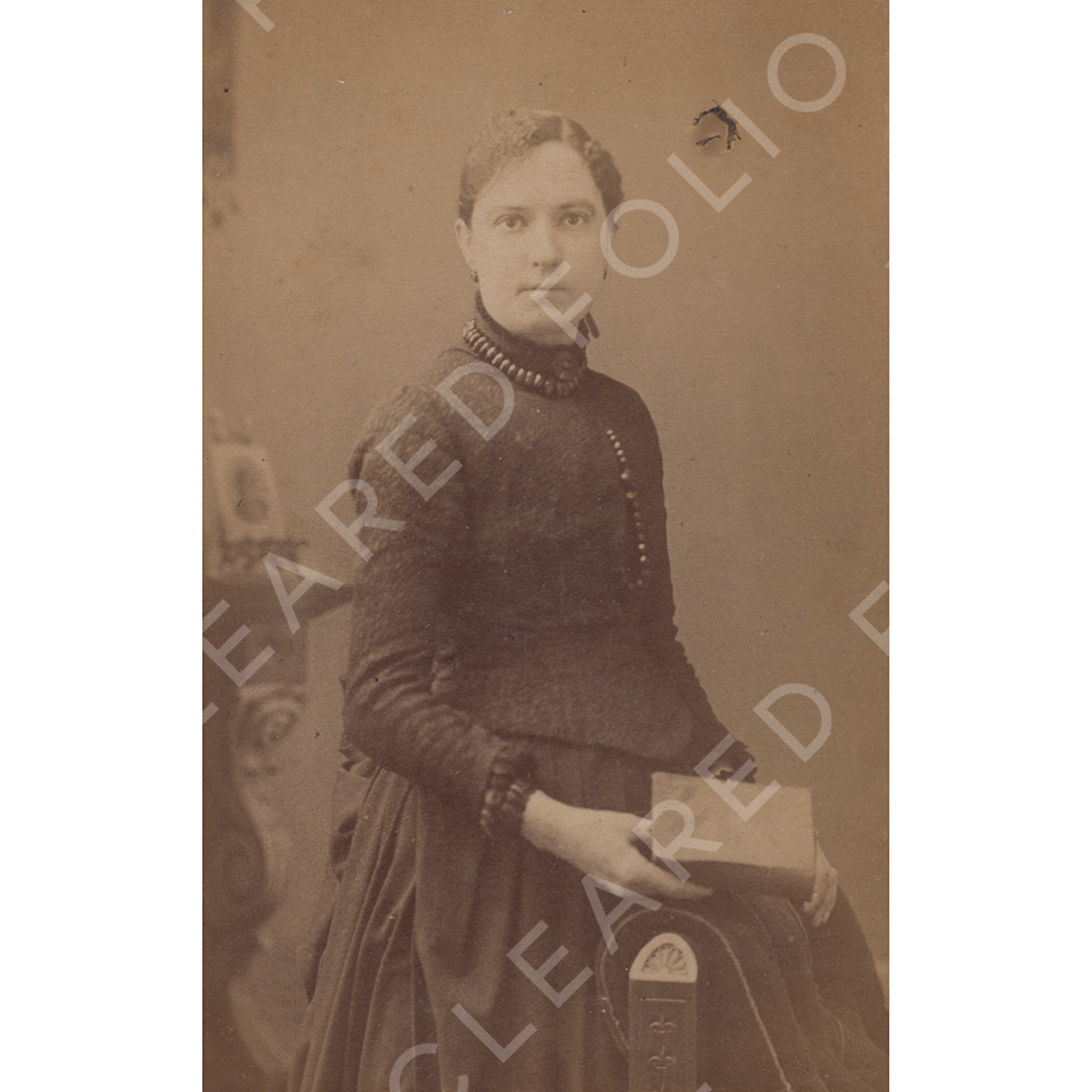 Title: Sepia Photograph Victorian portrait of young woman with a book