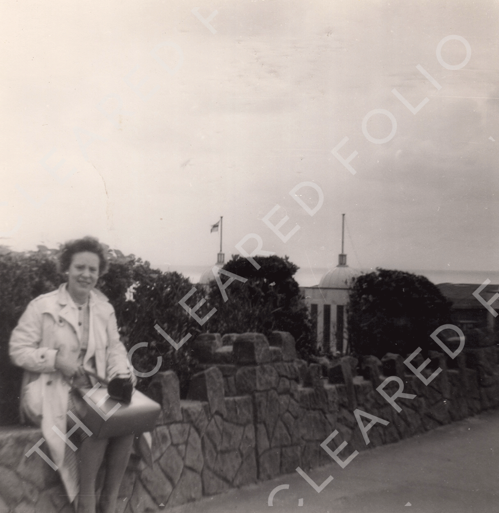 BW Photograph 1950s, older woman holiday snap